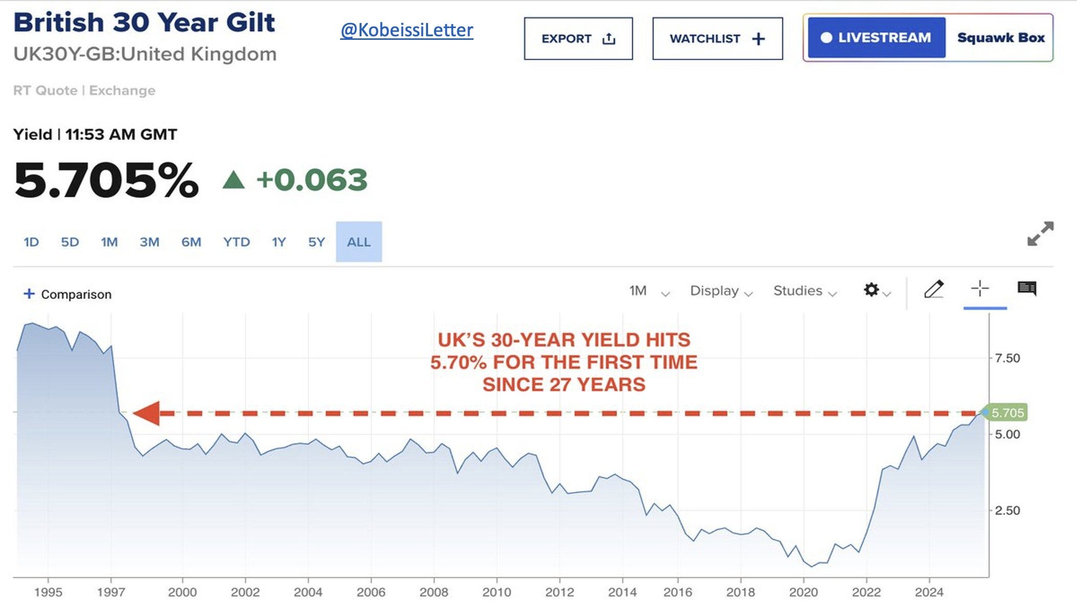 The international picture for deficits and rising long-term interest rates is challenging in the Western world, particularly in the UK, France, and the US.