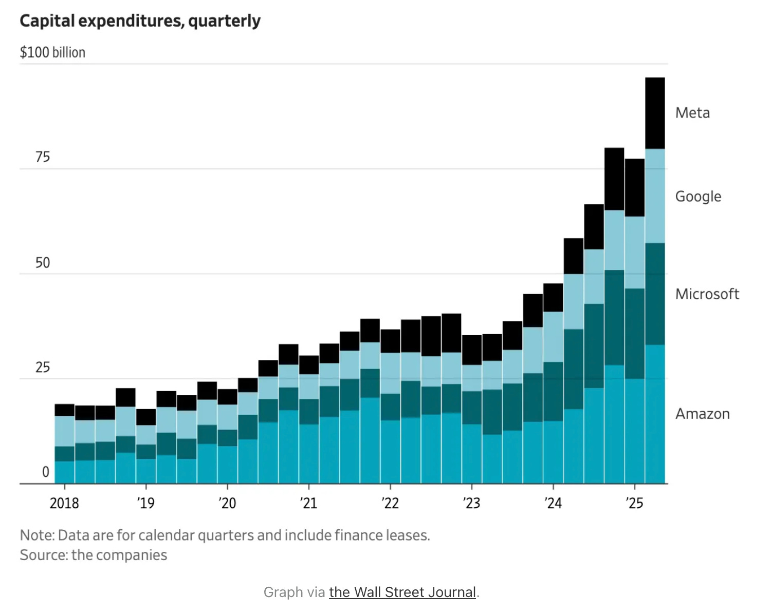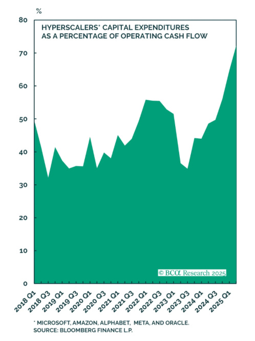 So far, most of this expenditure has come from operating cash flow, but that is now changing. Meta, for example, is working with PIMCO for $29B data center expansion project.