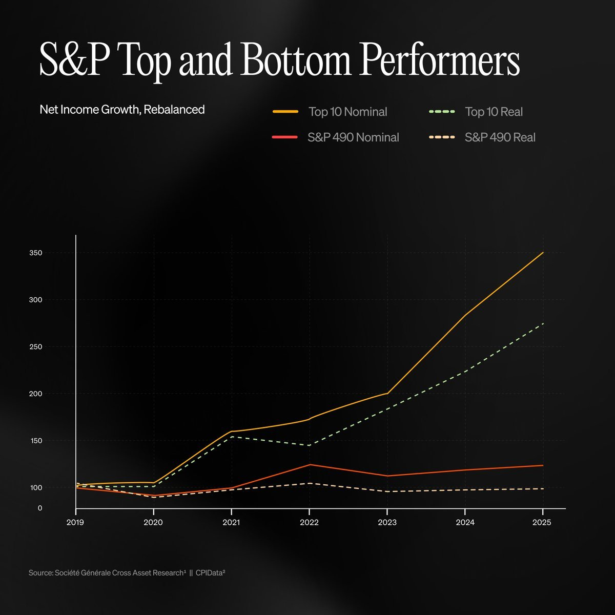 Before we get into the AI bubble, we’ll set expectations with the lopsided Net Income Growth that comes from the top 10 performers in S&P over the last five years and the lack of meaningful growth from most of the index (this graph is modulated by inflation). Important to note that in 2019, Nvidia wasn’t in the top 10, so this is very much a retrospective chart, and no one can predict the future.