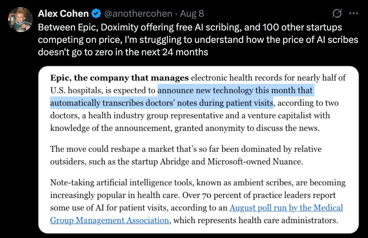 Matt Levine also brings some common sense to the discussion about the secondary market for OpenAI and the basics of supply and demand. This sort of discussion is much more intellectually enriching than numbers on how many times early venture investors made back their funds, because of the obvious oversimplification (though it’s still great for those funds and their LPs, of course!). To quote: