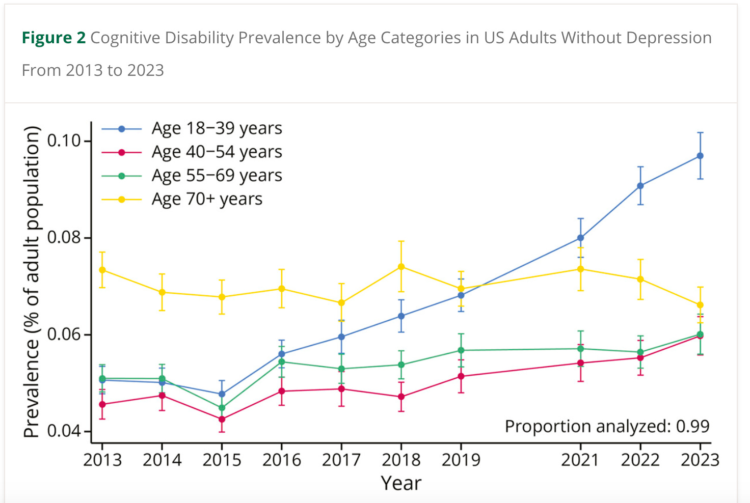 Rising Cognitive Disability as a Public Health Concern Among US Adults. It’s the phones and social media, probably.