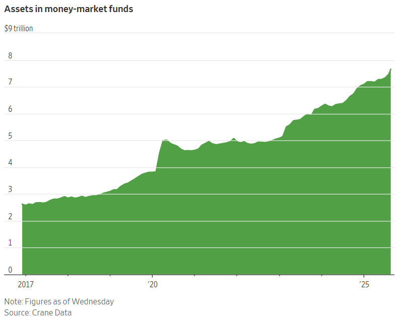 Even so, a substantial amount of capital remains available for retail investors to allocate to equities. Total assets in money market funds have hit a record $7.7 trillion, tripling over the last 8 years.