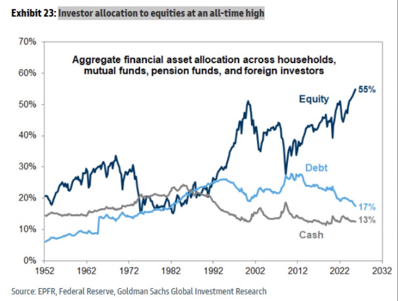 Investors are also choosing to allocate to equity vs debt at all-time high rates (the returns have been better, historically).