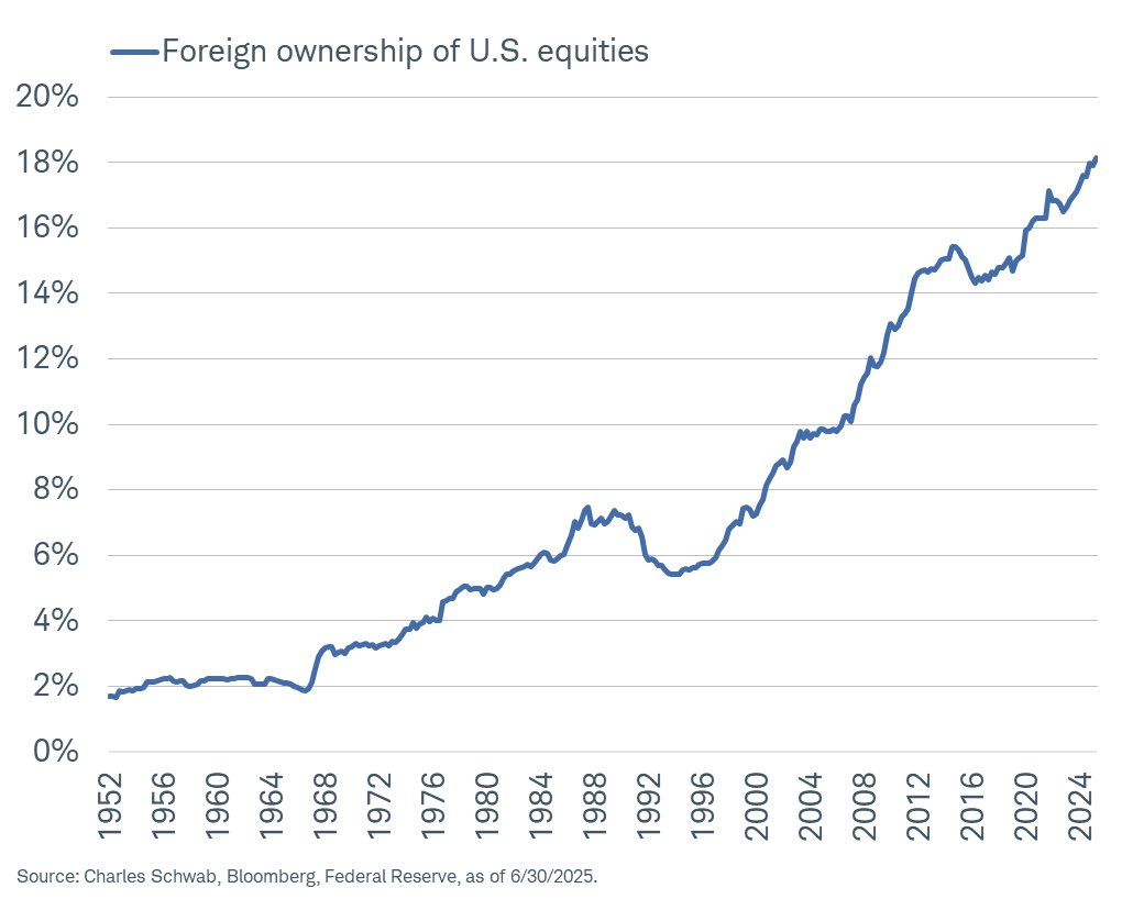 There is an increasing trend of foreign ownership as the world becomes wealthier and catches on to the resilience of the U.S. equity market.