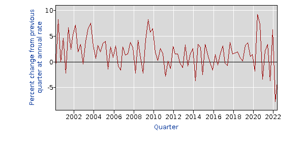 Employment numbers are way up, but GDP is down. That has not happened before for two quarters in a row across 70 years of data. It suggests reduced productivity. Productivity in services is hard to measure vs. productivity in manufacturing. It’s easy to measure the number of cars produced in a factory. It’s hard to tell how well kids learn in the classroom and how many healthcare outcomes are being solved. The productivity of service has a lot of quality issues baked in.