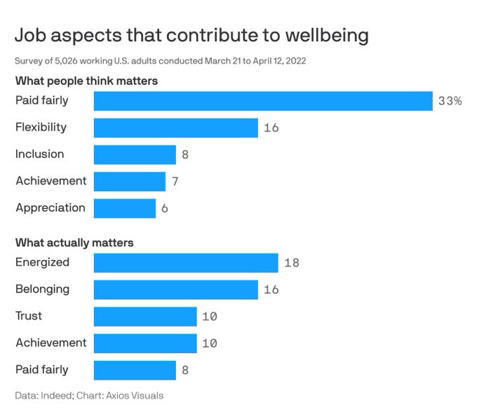 State of the Global Workplace: 2022 Report from Gallup. Here. "Get a bad [boss], and you are almost guaranteed to hate your job.” See the chart below. We see the same chart and analysis every year. People overestimate compensation and underestimate the intangibles, which are only provided by ‘good leadership’, e.g., being a human and using good judgment. Still, if somehow you get a disgruntled employee, you have to revert to the harsh legalistic and administrative processes of traditional Human Resources. These have been designed to protect a company and comply with the law. The more often this happens, the more it seeps into the culture of a company. I don’t think “employee experience” software will solve a leadership challenge.