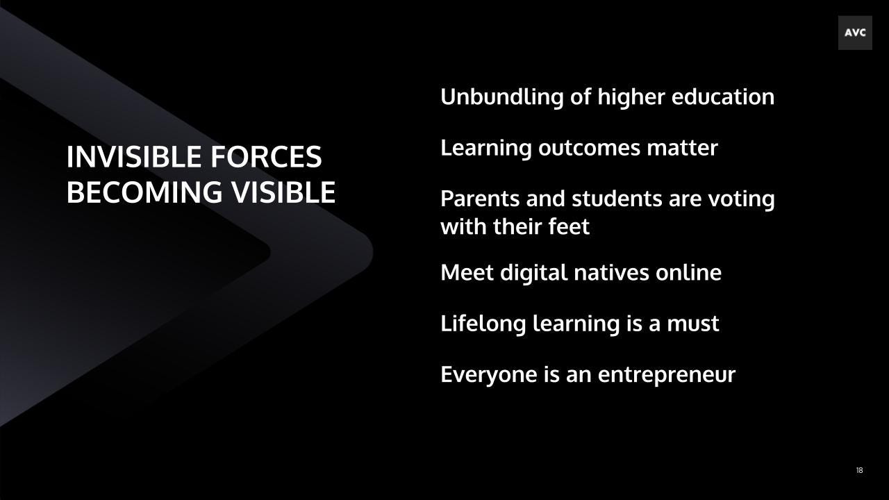 The inflection point that happened with COVID is one of massive infrastructure investment (at least for online infrastructure in the context of education). This makes it much less reversible to the trendline as some of the e-commerce trends. EdTech adoption accelerated by three years; EdTech infrastructure accelerated by eight years. There is still a ways to go for adoption.