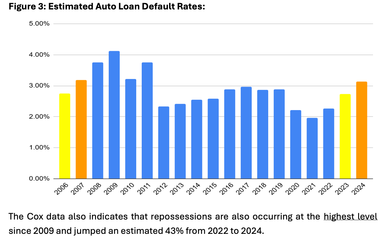 Driven to Default: The Economy-Wide Risks of Rising Auto Loan Delinquencies. Report from the Consumer Federation of America. I don’t know. It could be alarmist, but it's worth noting.
