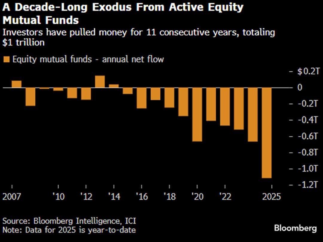 Brutal Year for Stock Picking Spurs Trillion-Dollar Fund Exodus in Bloomberg