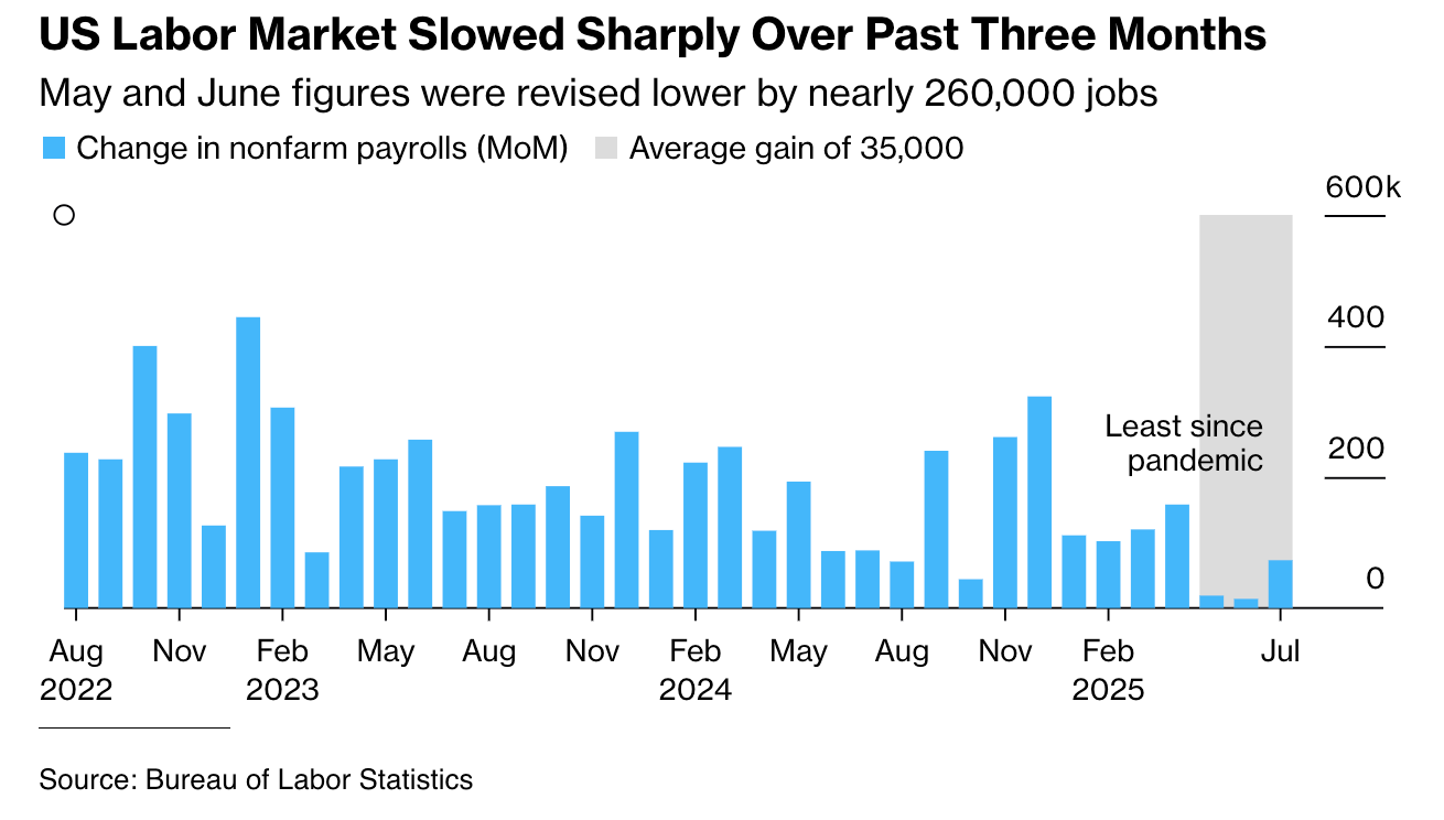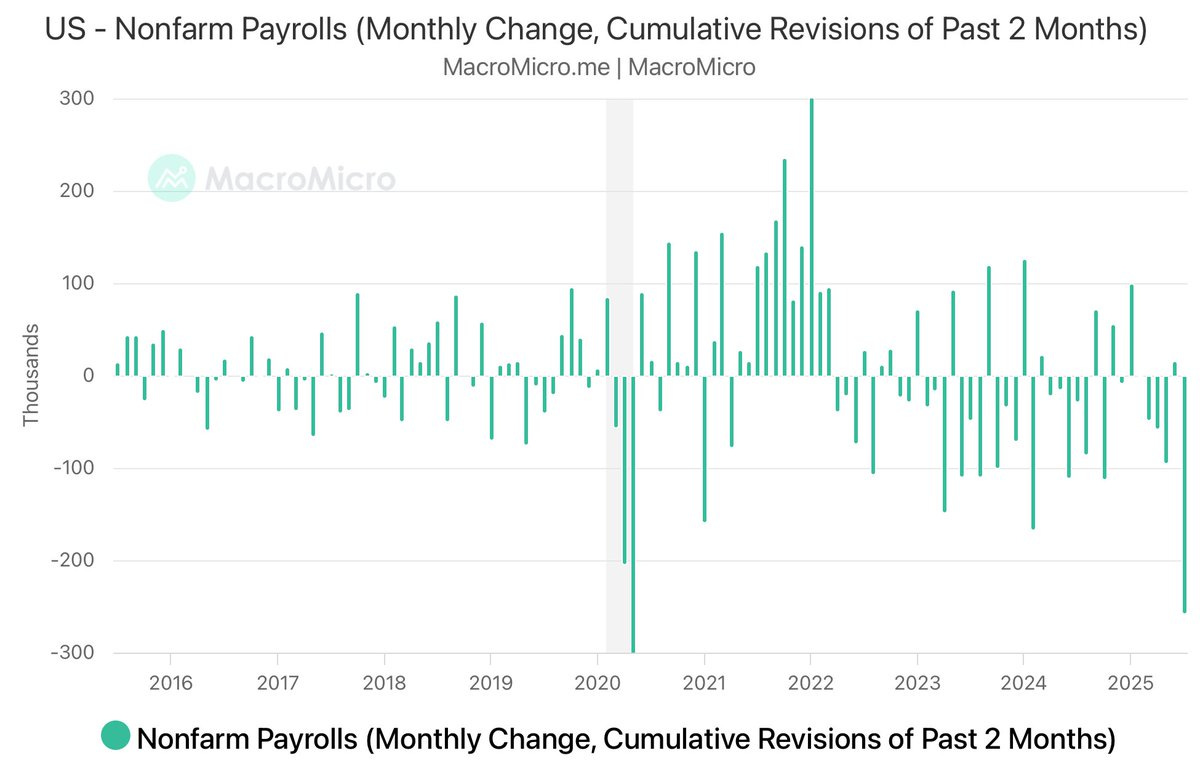 America’s Economic Data Disaster Is Worse Than We Thought - Bloomberg. U.S. jobs data was revised down, and the head of the BLS was fired. BLS revised the non-farm payrolls from the previous two months down by 258K, marking the largest downward revision since 2020.