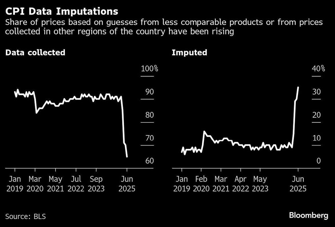 It’s important to note that the quality of BLS data is declining, as noted by Tracy Alloway (Bloomberg), due to decreased response rates on surveys and budget cuts from DOGE, which have led to scaled-back data collection. Below shows the reduction of the actual price data decline in the metrics.
