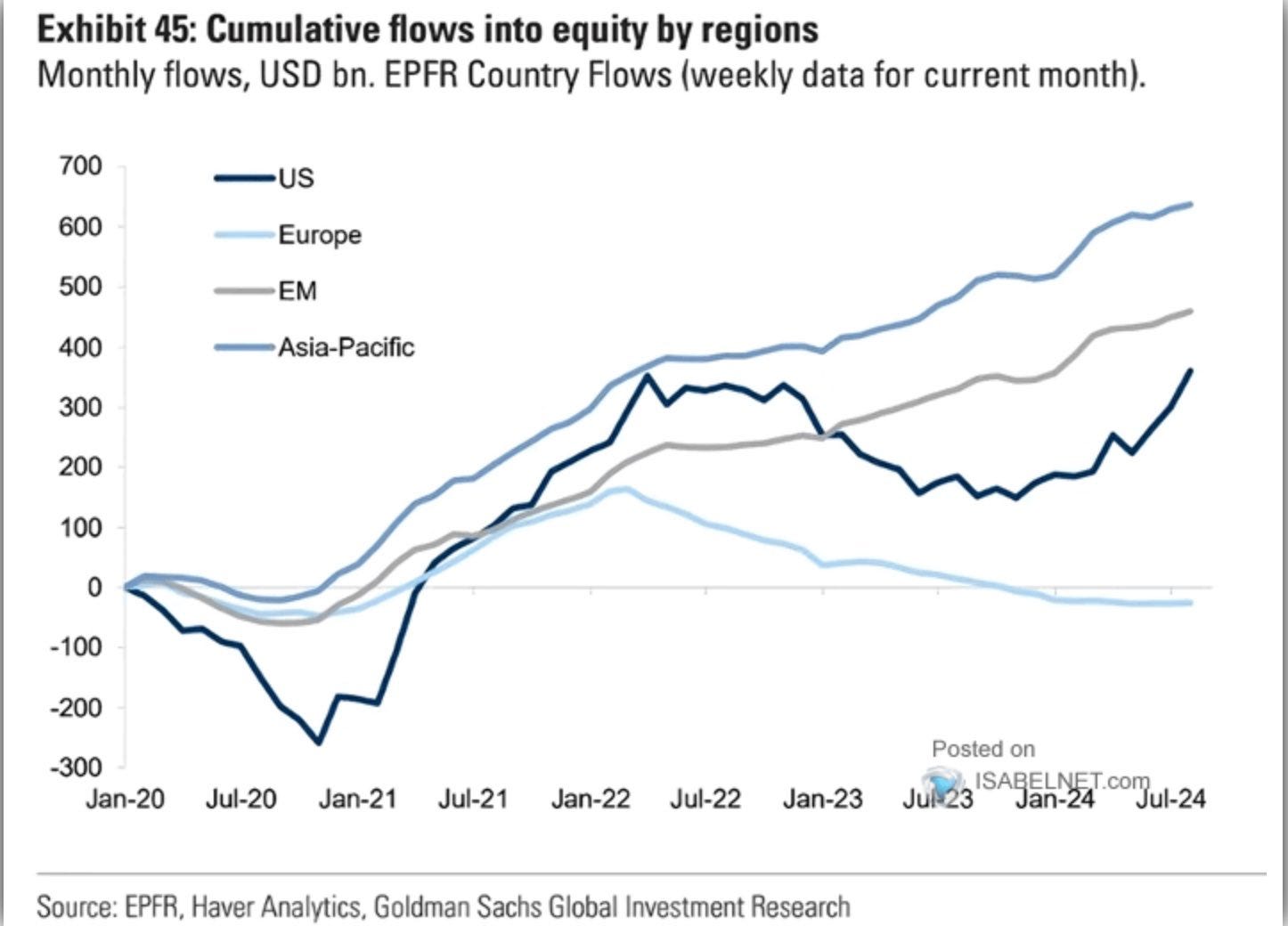 I don’t know. I’m not trying to play that game. But there is a question of broad portfolio diversification, particularly if you are deciding your allocation between US-listed equities and the rest of the world. As the US continues to outperform international equities, people are asking if this trend will continue or if it’d be smart to reallocate to less expensive, decade-long underperforming international stocks.
