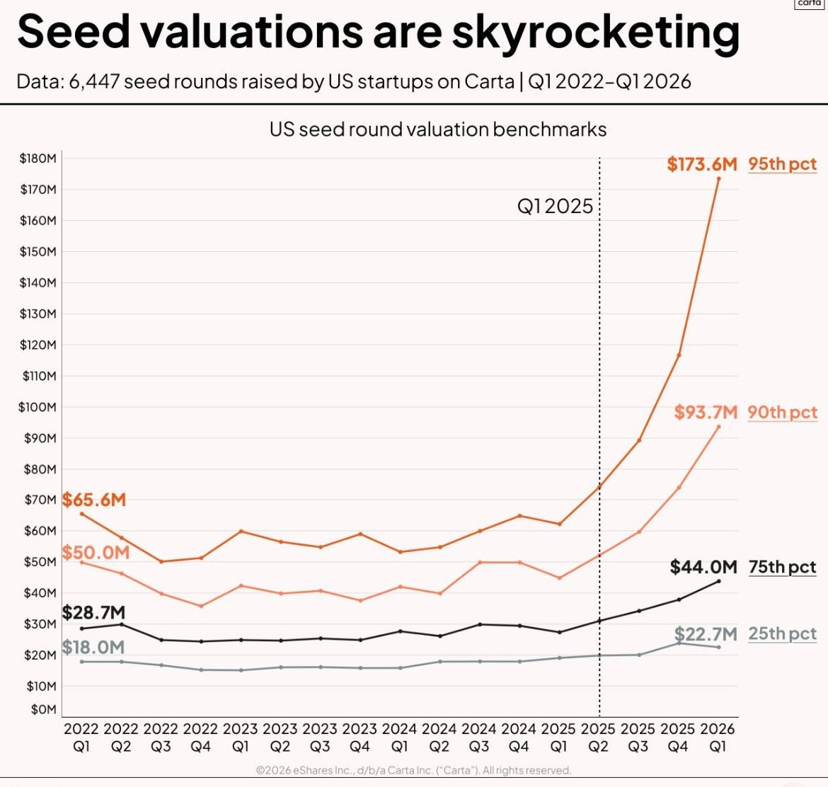2025 vintage Fund 4, do you invest? No, right? Because the valuations aren’t rewarding the risk. The historical valuation highs are in the Carta data below and are discussed in this recent piece, titled "The Valuation Trap."
