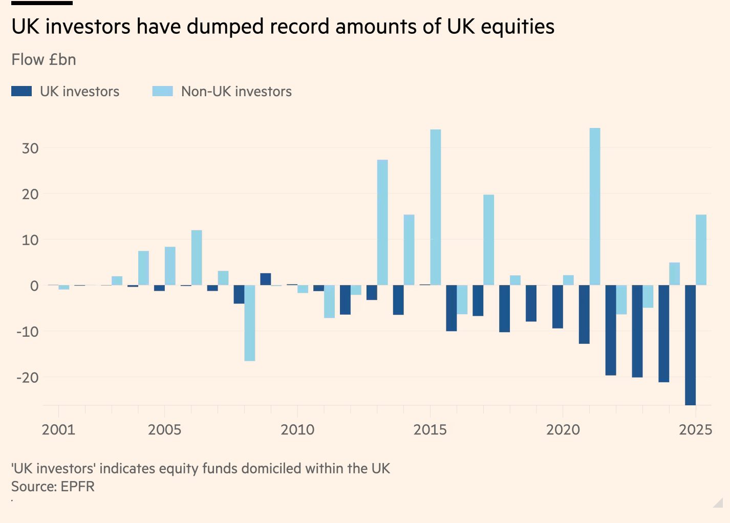 UK Investors Pull Out of the London Stock Market at Record Pace. Outflows come as inflows from foreign investors help propel the FTSE 100 to a record high.