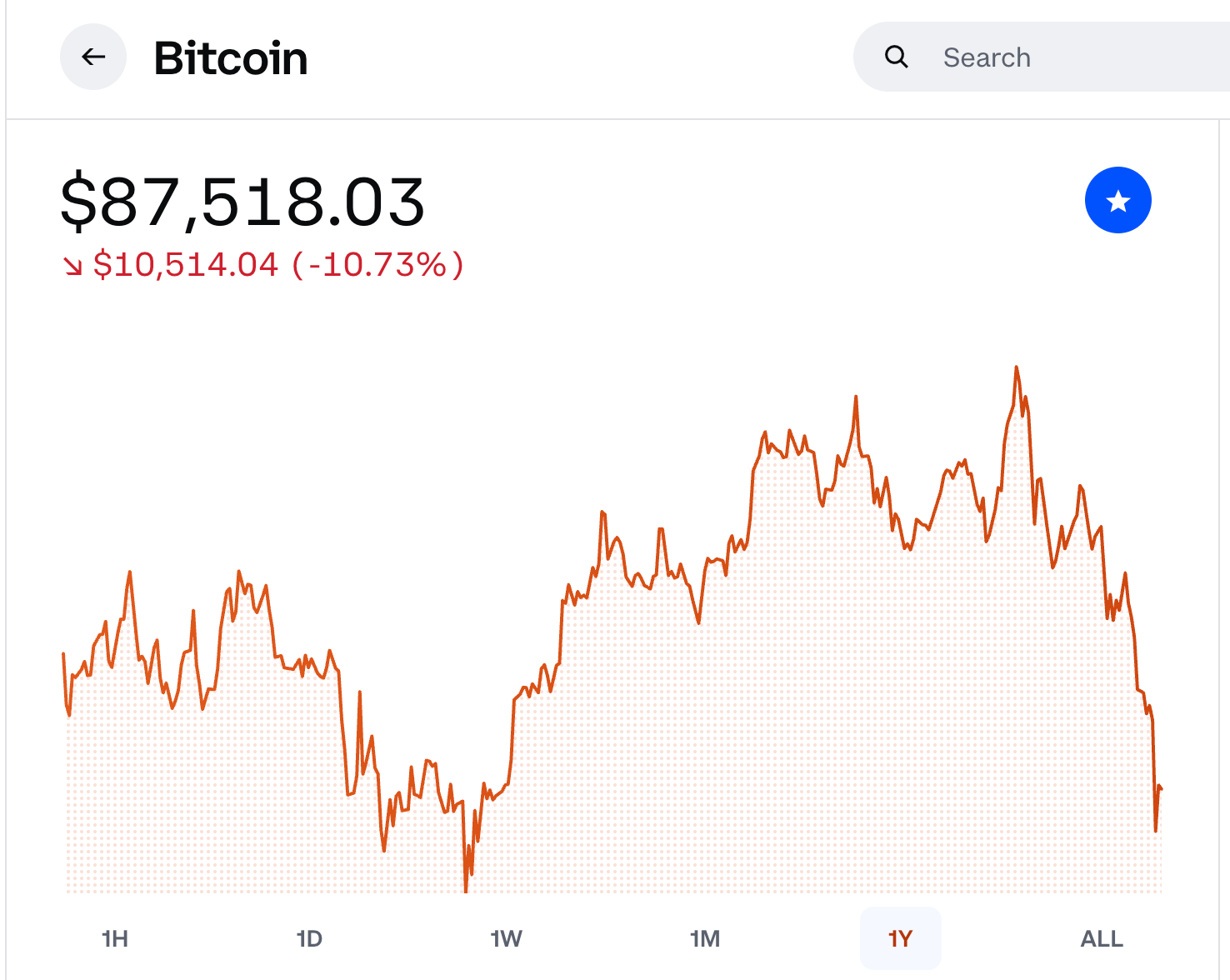 Just a note on Bitcoin and Crypto. Yes, it’s all down ~20% this month, and BTC is now down 10% for the year. It’s a volatile asset class prone to drawdowns. It trades like speculative tech, not like a risk-off hedge. Long-term buy-and-hold investors know this dynamic. I don’t think it’s dead, but it’s obviously not ‘digital gold’ either.