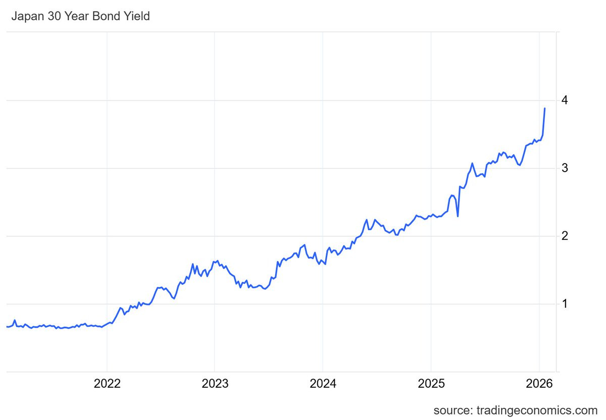 Also, Japanese 30-year bonds are worth keeping tabs on. Not a great trend line. After a long time, this happened all at once; these bonds have not been above 3% since before 2000 and had not eclipsed 2% since 2012.