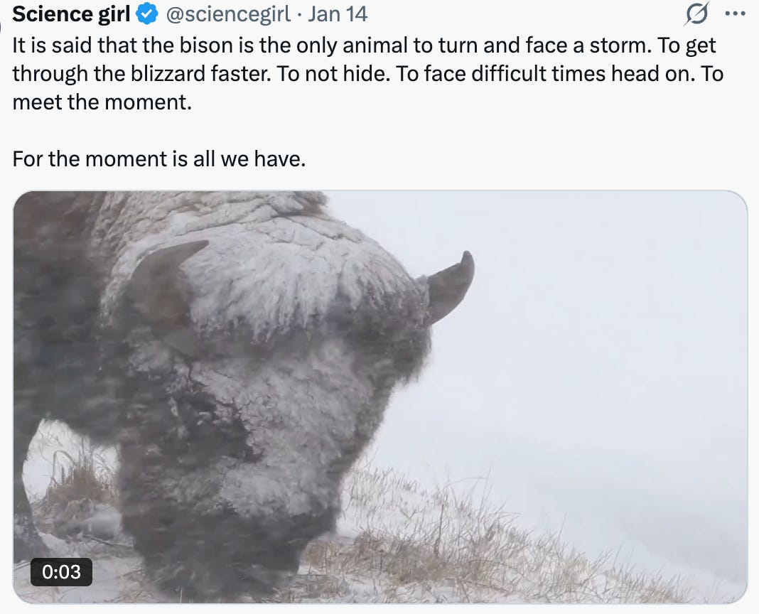 So, let’s be like the American Bison and face the storm. Also, my life advice? Find a guy who can put Humpty Dumpty back together again.